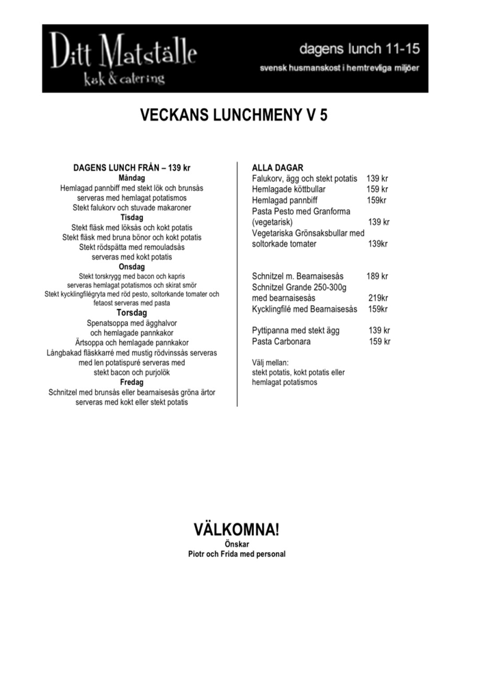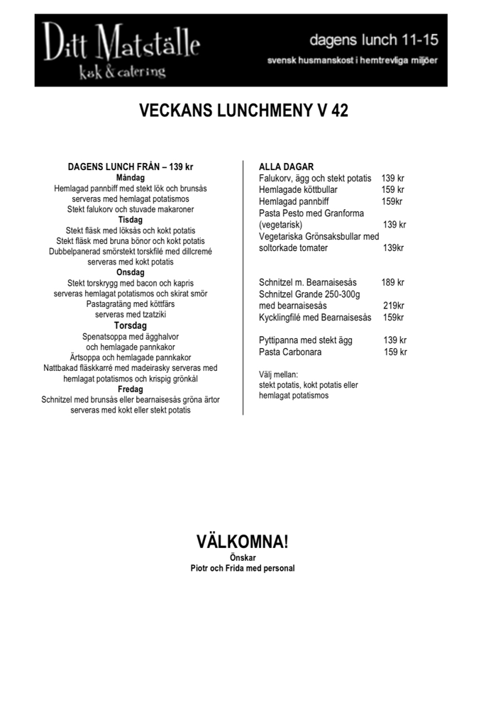Inkl. Salladsbuffé, hembakat bröd och kladdkaka samt kaffe/te